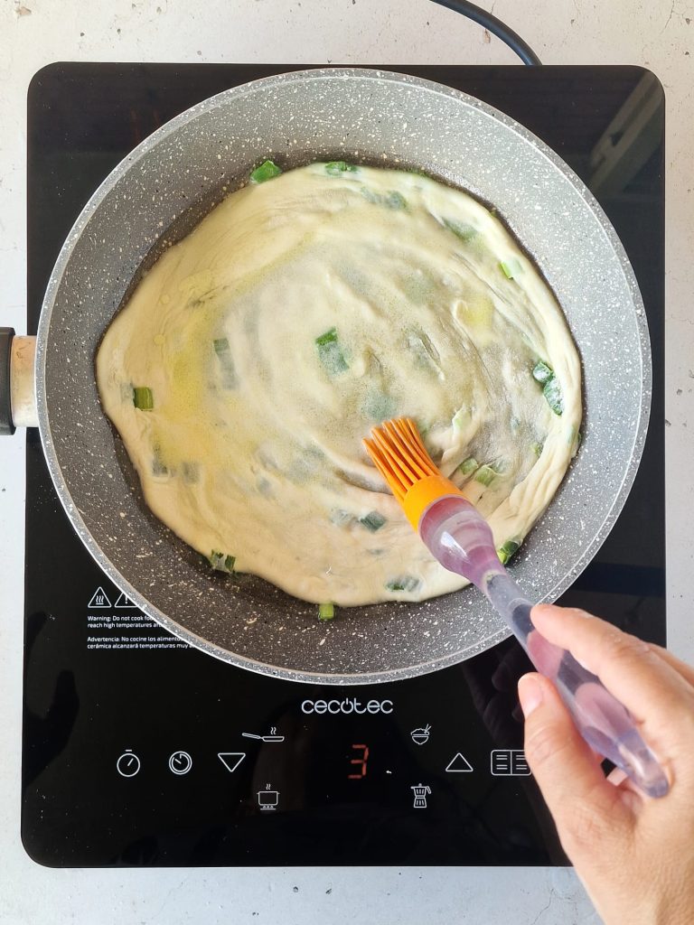 La préparation des crêpes chinoises au ciboule est très simple et prend très peu de temps.