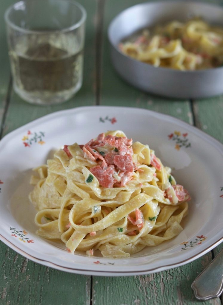 Préparer les tagliatelles au saumon avec crème est vraiment simple et très rapide, avec la sauce qui cuit le temps de cuisson des pâtes.