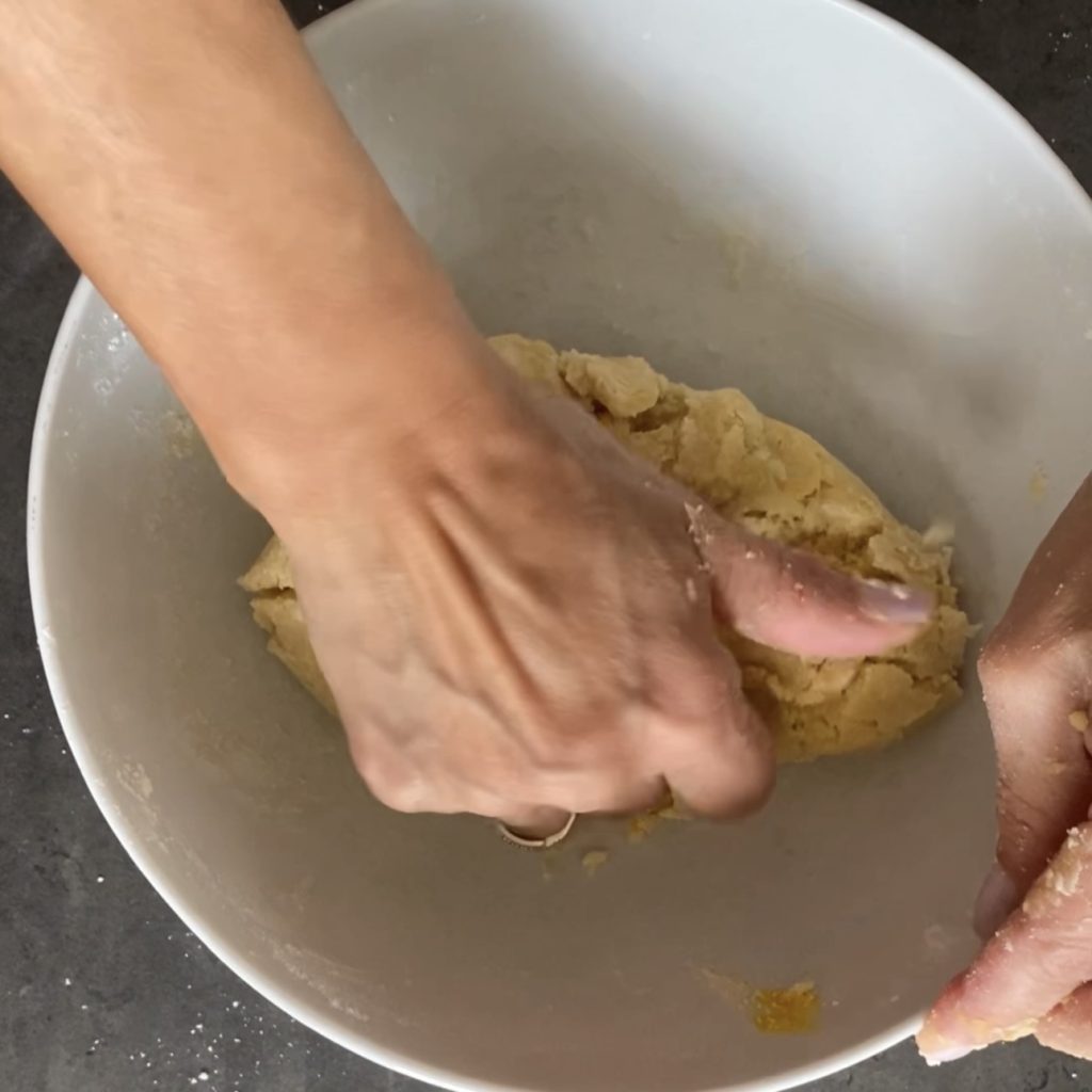 • et pétrissez jusqu’à obtenir la pâte sablée classique, compacte et brillante,