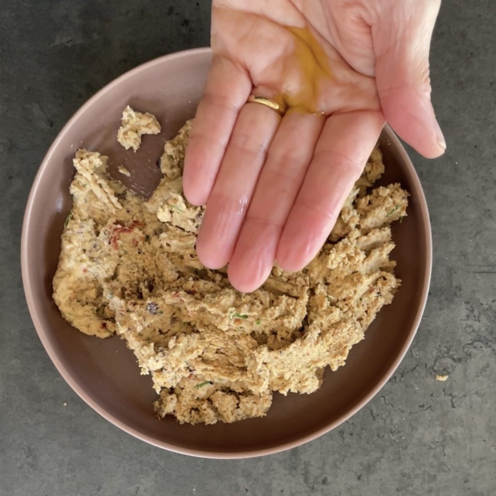• prenez une portion de la taille d’une noix et formez les boulettes,