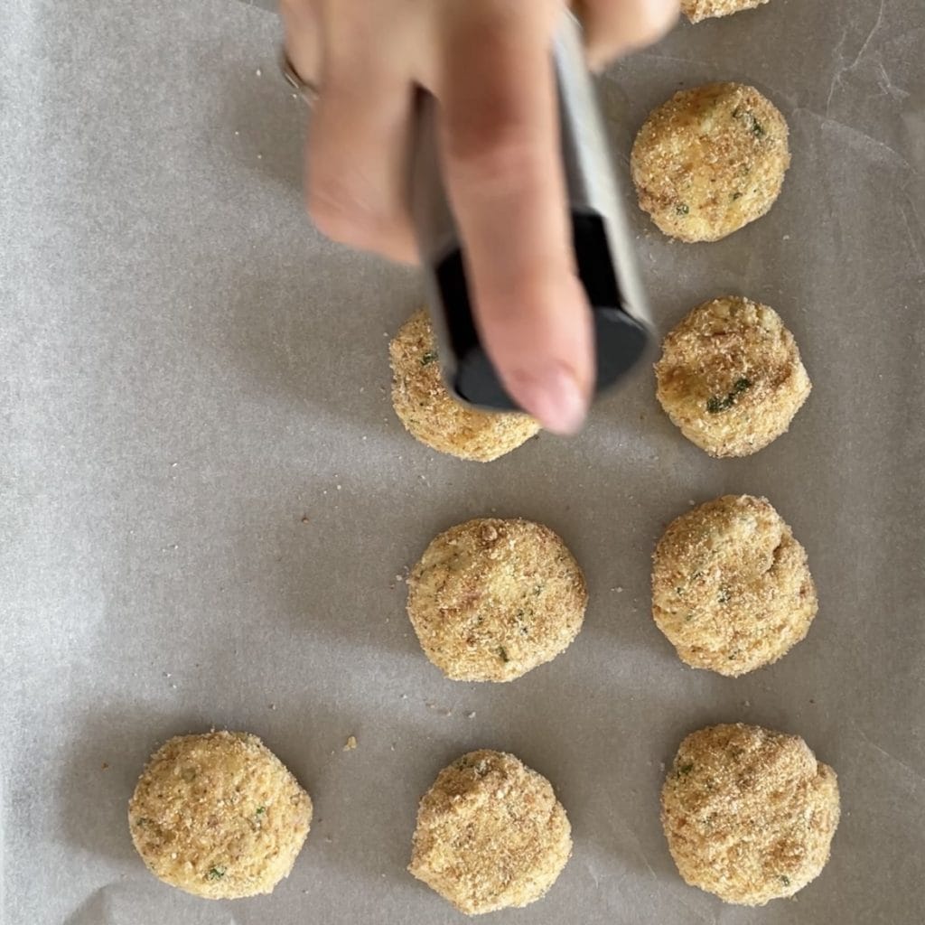 Quand les boulettes de thon et ricotta au four seront prêtes, sortez-les du four, ajoutez une pincée de sel et servez-les chaudes ou à température ambiante.