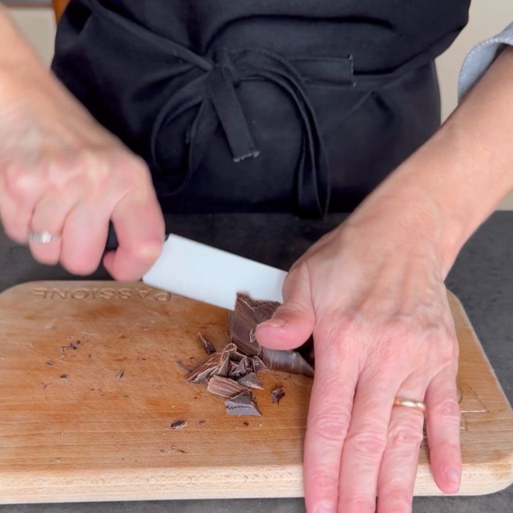 Préparez maintenant la ganache au chocolat, hachez les 100 g de chocolat noir,