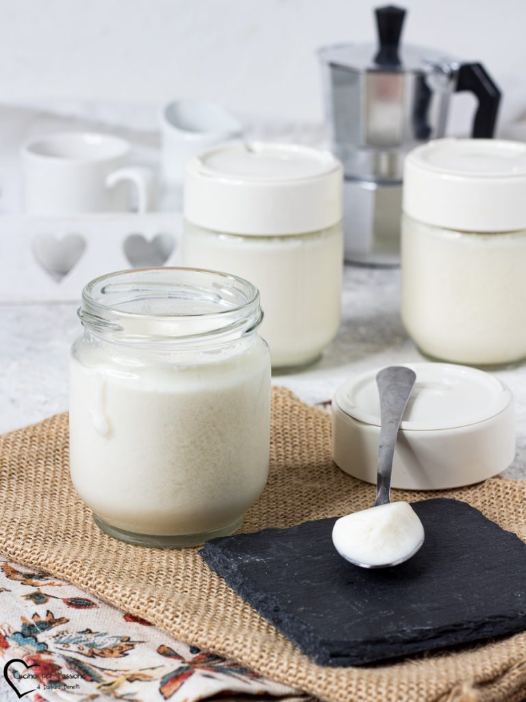Comment faire le yaourt à la maison de manière simple, vous le préparez facilement, il est bon et sain et si vous avez des problèmes d’intolérance au lactose, il vous suffit d’utiliser un yaourt blanc naturel sans lactose et du lait sans lactose pour avoir un yaourt crémeux et adapté à vous. Je le prépare avec la yaourtière, c’est très facile et se prépare tout seul sans difficulté, car une fois les ingrédients mélangés, il vous suffira de le verser dans les pots en verre de la yaourtière et de le laisser reposer le temps programmé, puis la yaourtière s’éteindra toute seule. J’utilise une yaourtière électrique du commerce ( ma yaourtière) on en trouve de différents types, il y en a aussi de très simples non électriques où il suffit de verser de l’eau bouillante, une sorte de thermos pour aliments où le yaourt repose au chaud émis par l’eau bouillante. Si vous le souhaitez, vous pouvez ajouter du miel ou du sirop d’érable pour le rendre plus sucré, vous pouvez ensuite le garnir de fruits frais, de céréales ou de muesli. Pour commencer à faire le yaourt maison, vous pouvez utiliser comme dans mon cas un pot de yaourt naturel ou un sachet de ferments lactiques pour yaourt que vous trouverez en pharmacie ou sur Amazon, puis vous pouvez utiliser le pot de yaourt comme starter pendant 5/6 fois puis je vous conseille de recommencer avec un nouveau yaourt ou un sachet de ferments. Maintenant, voyons comment faire le yaourt maison avec la yaourtière et si vous l’essayez, faites-le moi savoir. Barbara