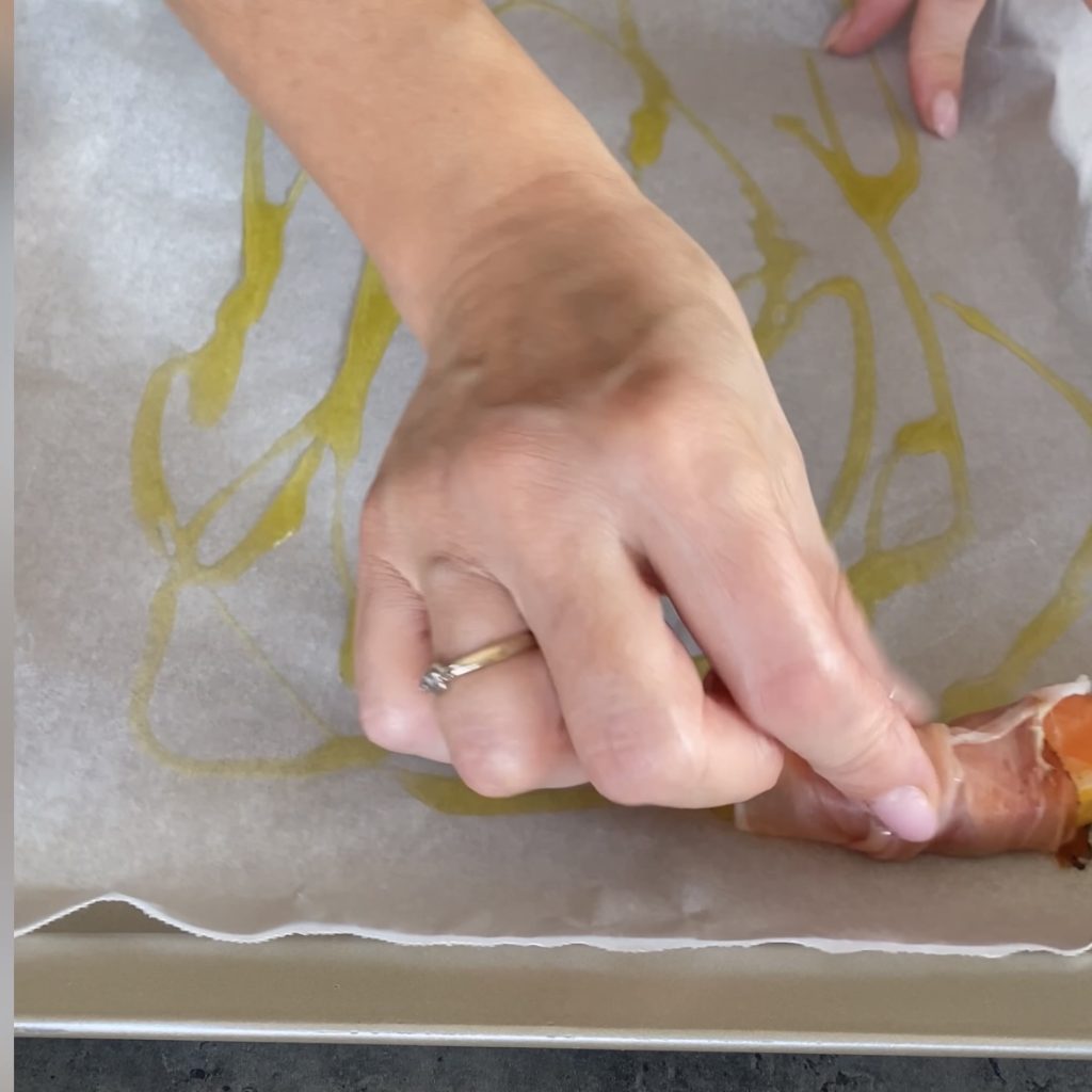prenez les tranches de courge et enroulez-les avec le speck,
