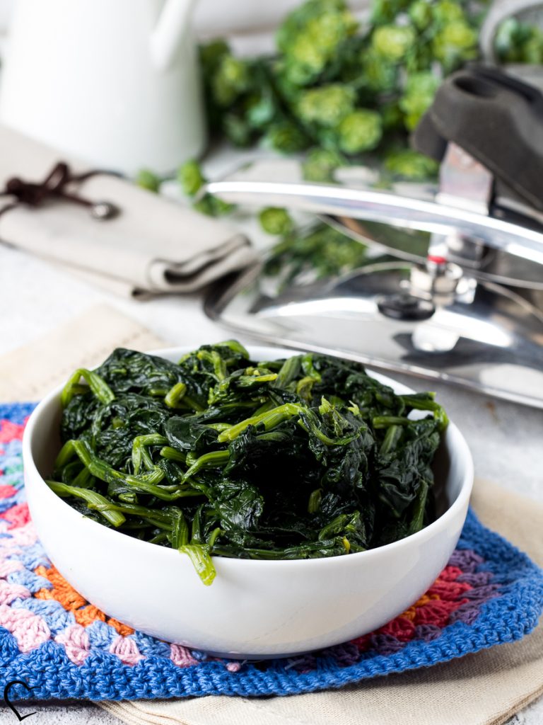 La cocotte-minute (ou autocuiseur) est la solution idéale pour celles et ceux qui, comme moi, veulent manger sainement mais manquent de temps. En très peu de temps, vous aurez des épinards parfaits, excellents avec un filet d’huile d’olive ou comme base pour d’autres préparations. Vous verrez, une fois que vous aurez essayé cette technique, vous ne reviendrez plus en arrière !