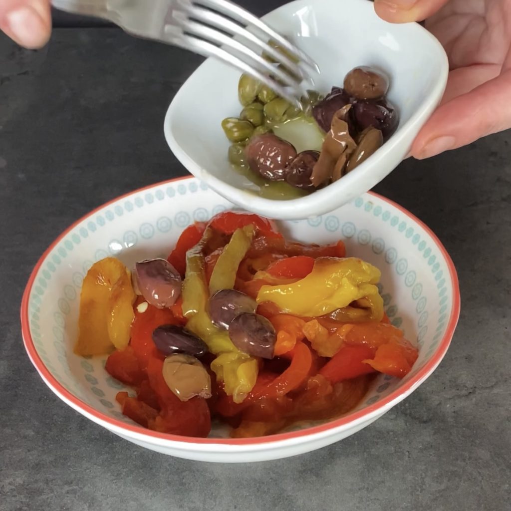 FILETS DE POIVRONS AUX OLIVES ET CÂPRES
