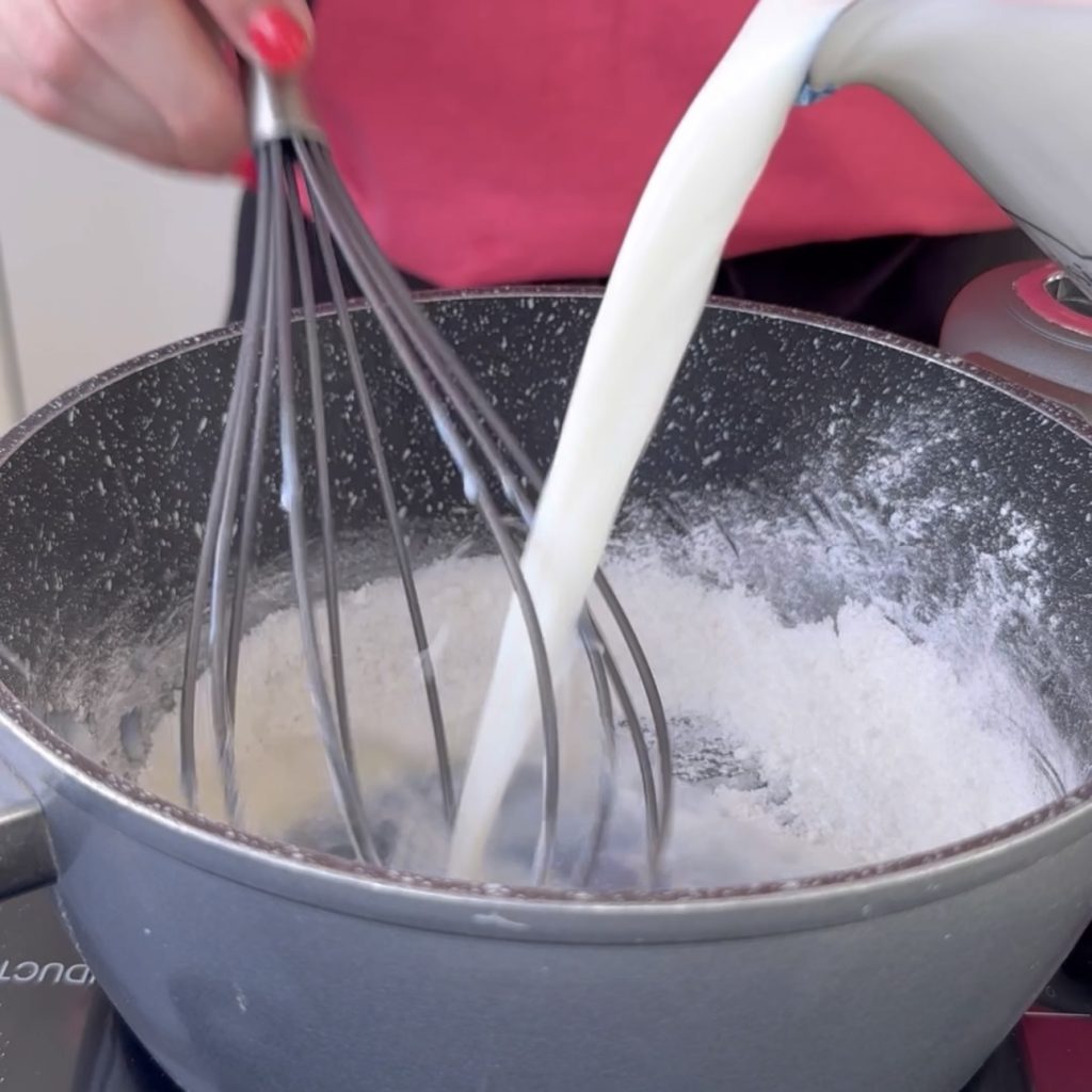 Ajoutez petit à petit le lait afin d’éviter la formation de grumeaux,