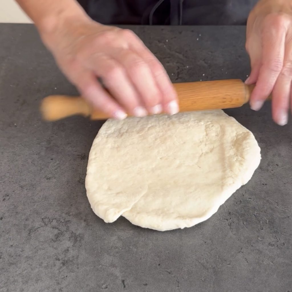 Étalez-en une partie d’abord avec les mains puis avec un rouleau à pâtisserie