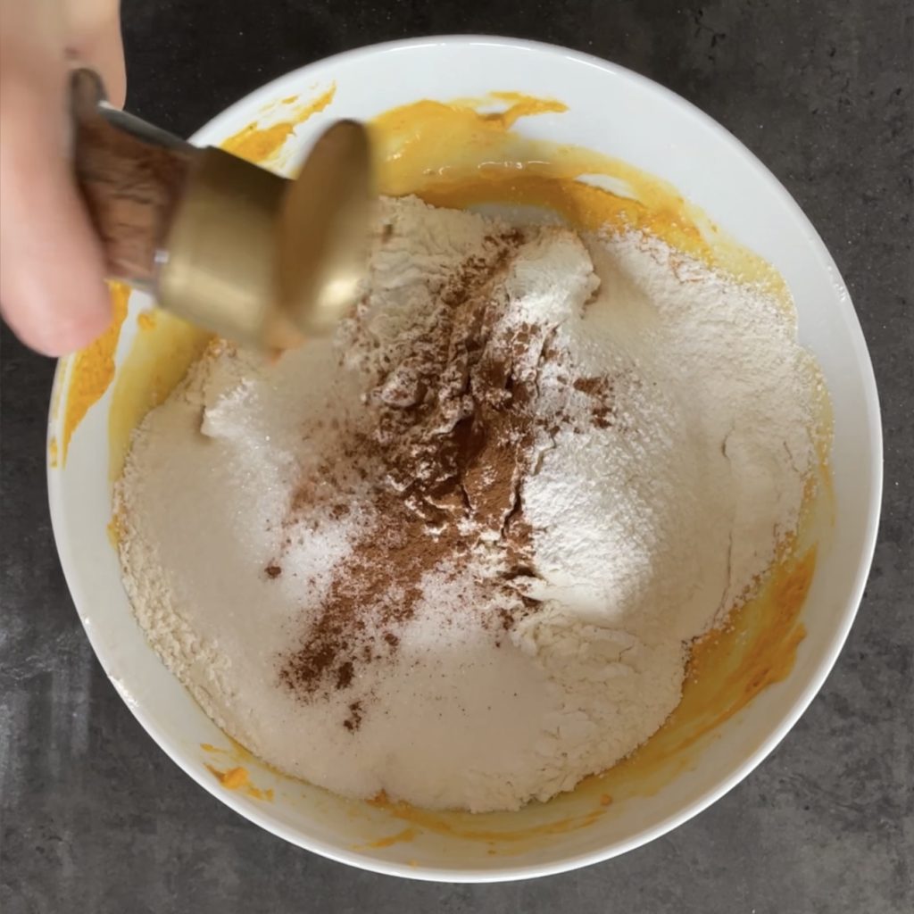 • Versez la crème dans un bol et ajoutez la purée de citrouille,