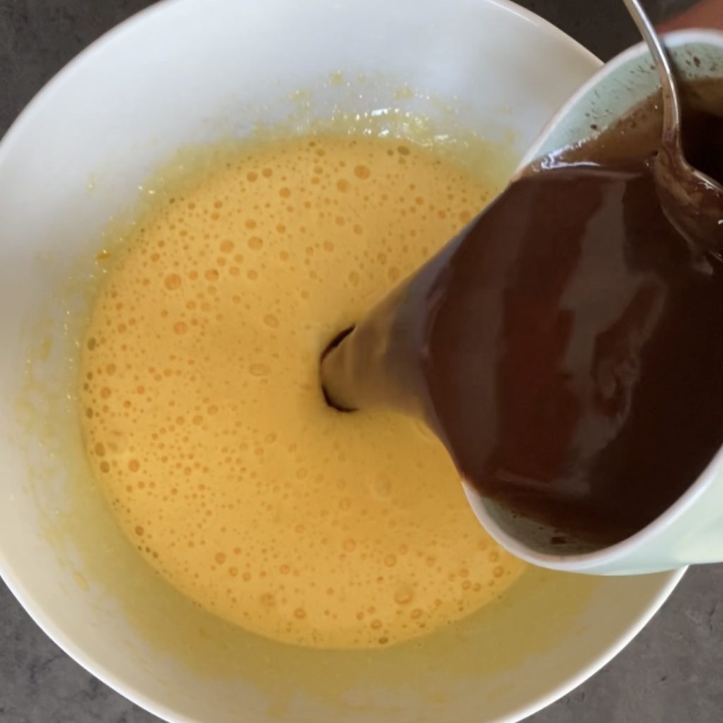 Lorsque le mélange est homogène et que la Nutella est bien incorporée aux œufs, ajoutez la levure tamisée,