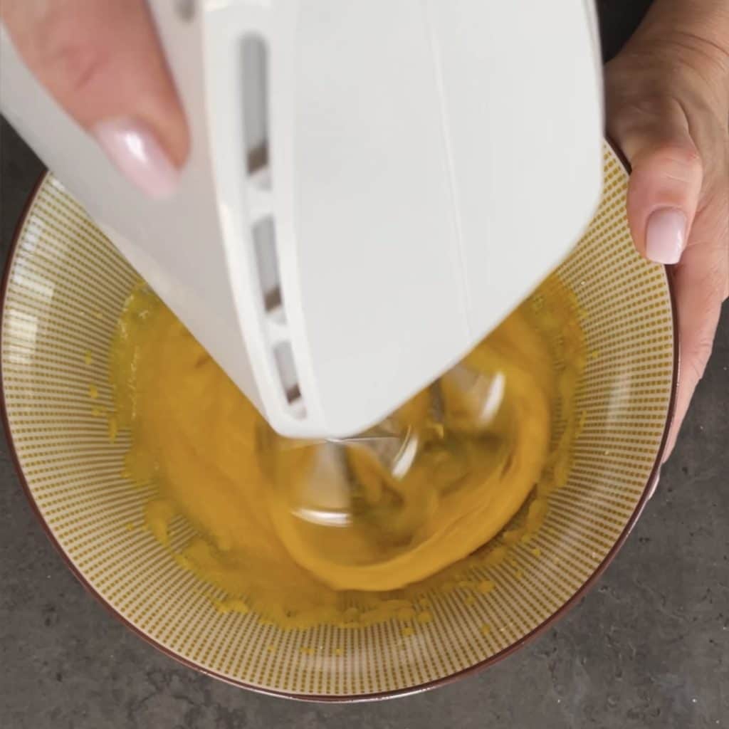 travaillez avec les fouets électriques jusqu’à obtenir un mélange clair, gonflé et bien monté.