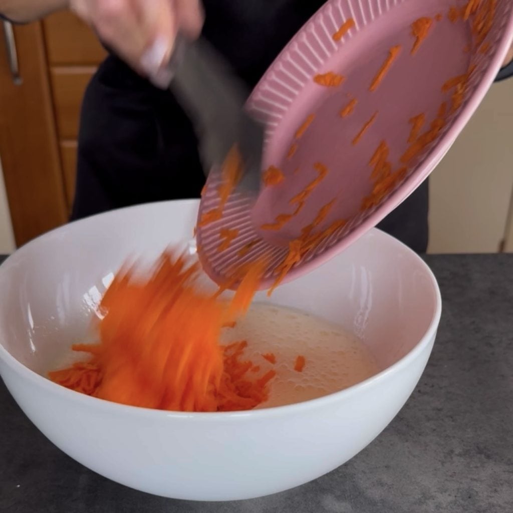 • Ajoutez les carottes râpées et incorporez-les avec la spatule,