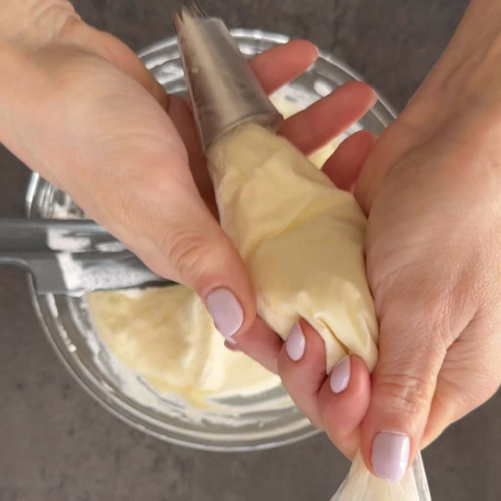 • Prélevez quelques cuillères de crème, mettez-les dans une poche à douille pour la décoration finale.