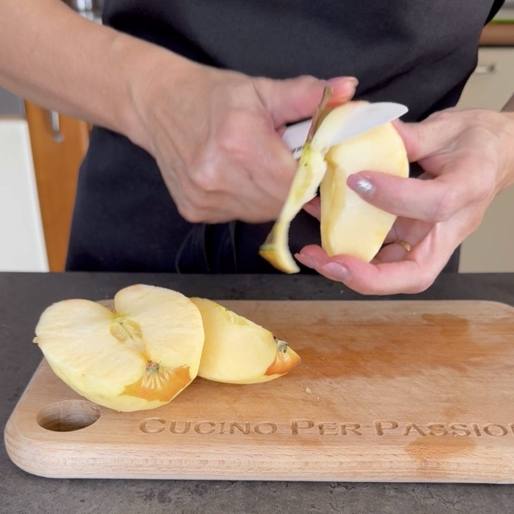 • Coupez une pomme en morceaux,