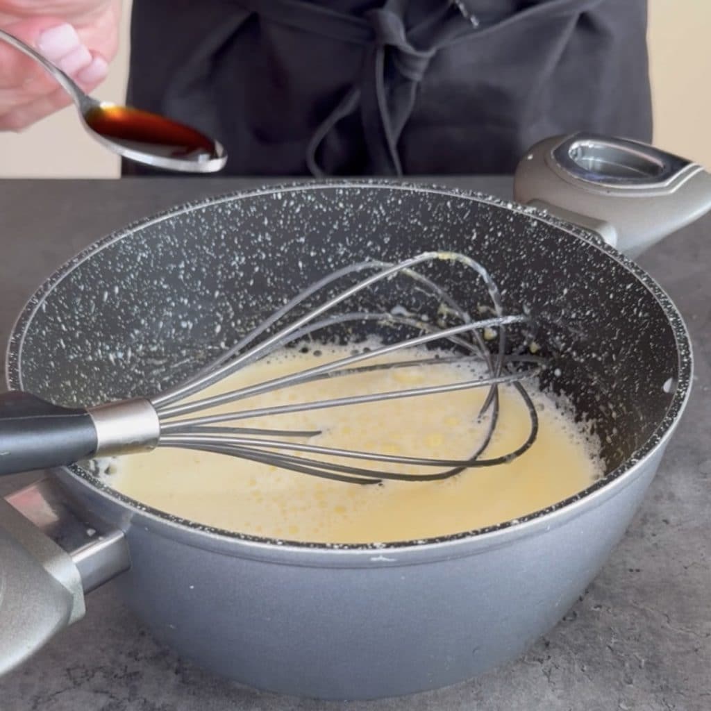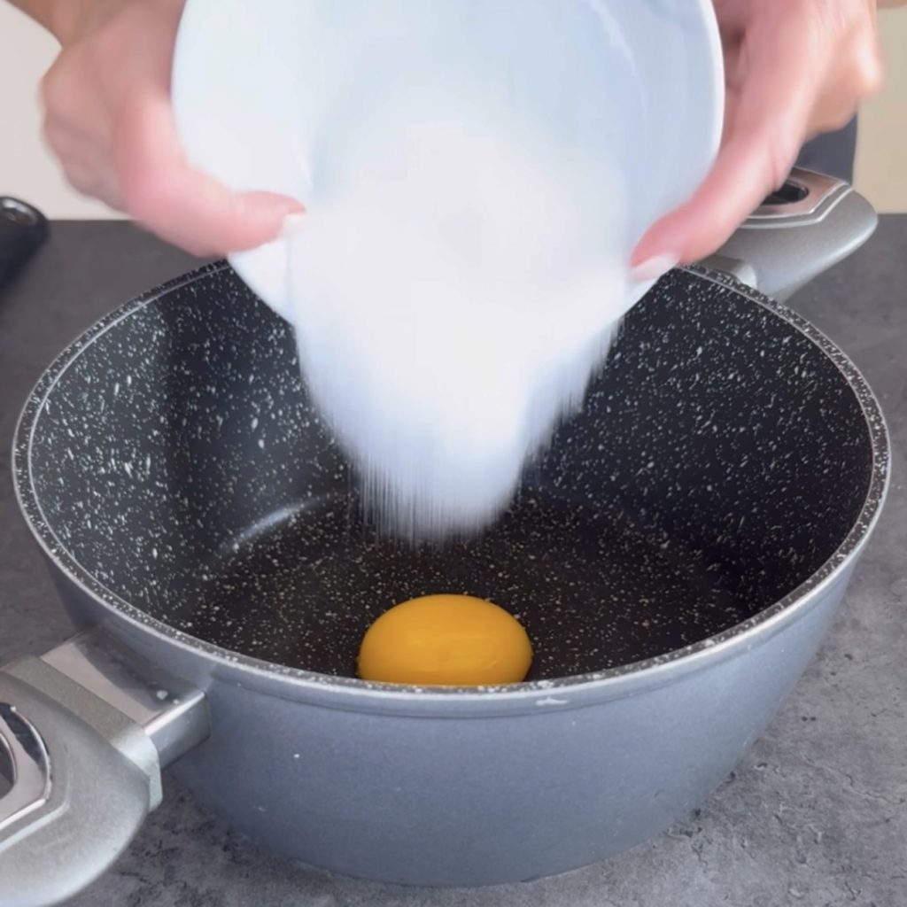 • Commençons à préparer le gâteau avec la crème et les pommes, commencez par préparer la crème pâtissière, versez dans une casserole le jaune d’œuf,