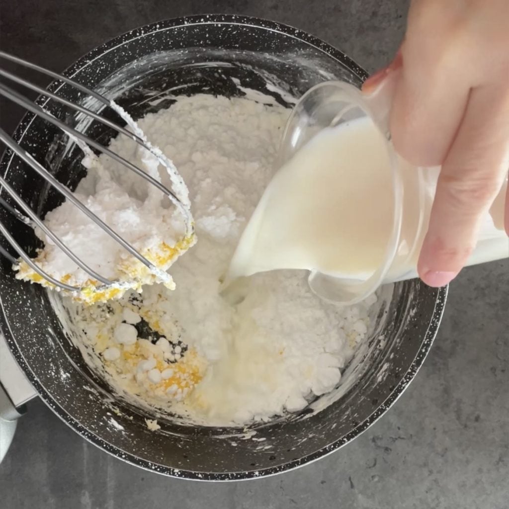 Ajoutez peu à peu le lait pour éviter la formation de grumeaux,