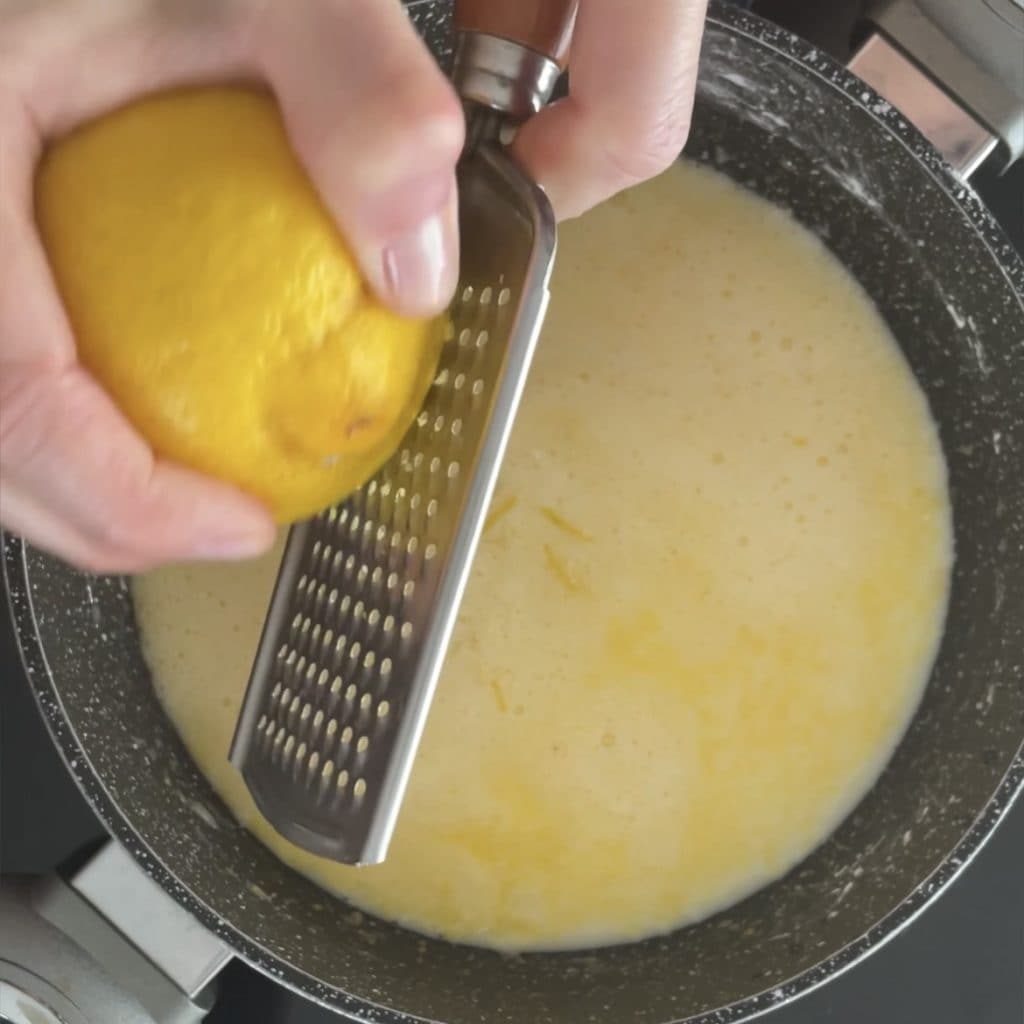 quand le mélange est homogène et sans grumeaux ajoutez le zeste râpé du citron