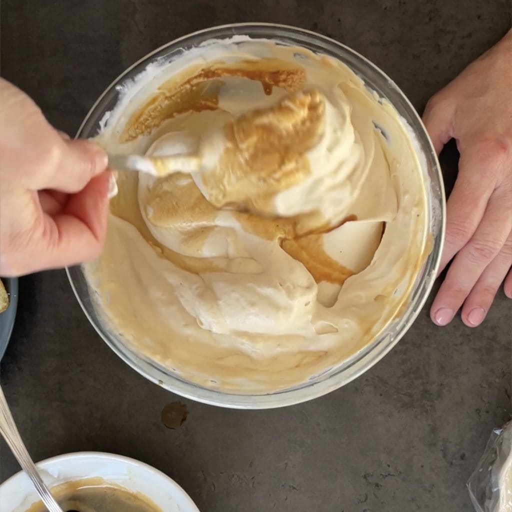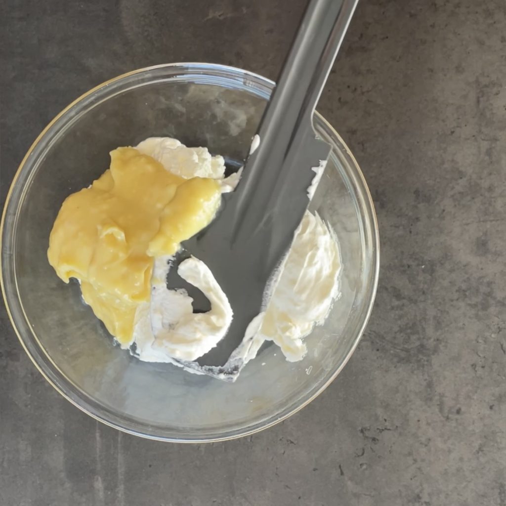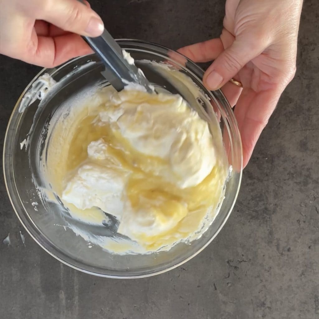 Incorporez avec une spatule et avec des mouvements de haut en bas pour ne pas la démonter.