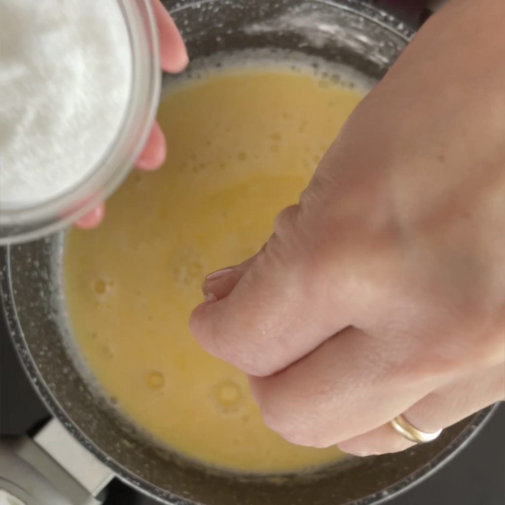 Ajoutez le sucre glace et incorporez-le pour obtenir une crème lisse, sans grumeaux, ajoutez maintenant le reste du lait.
