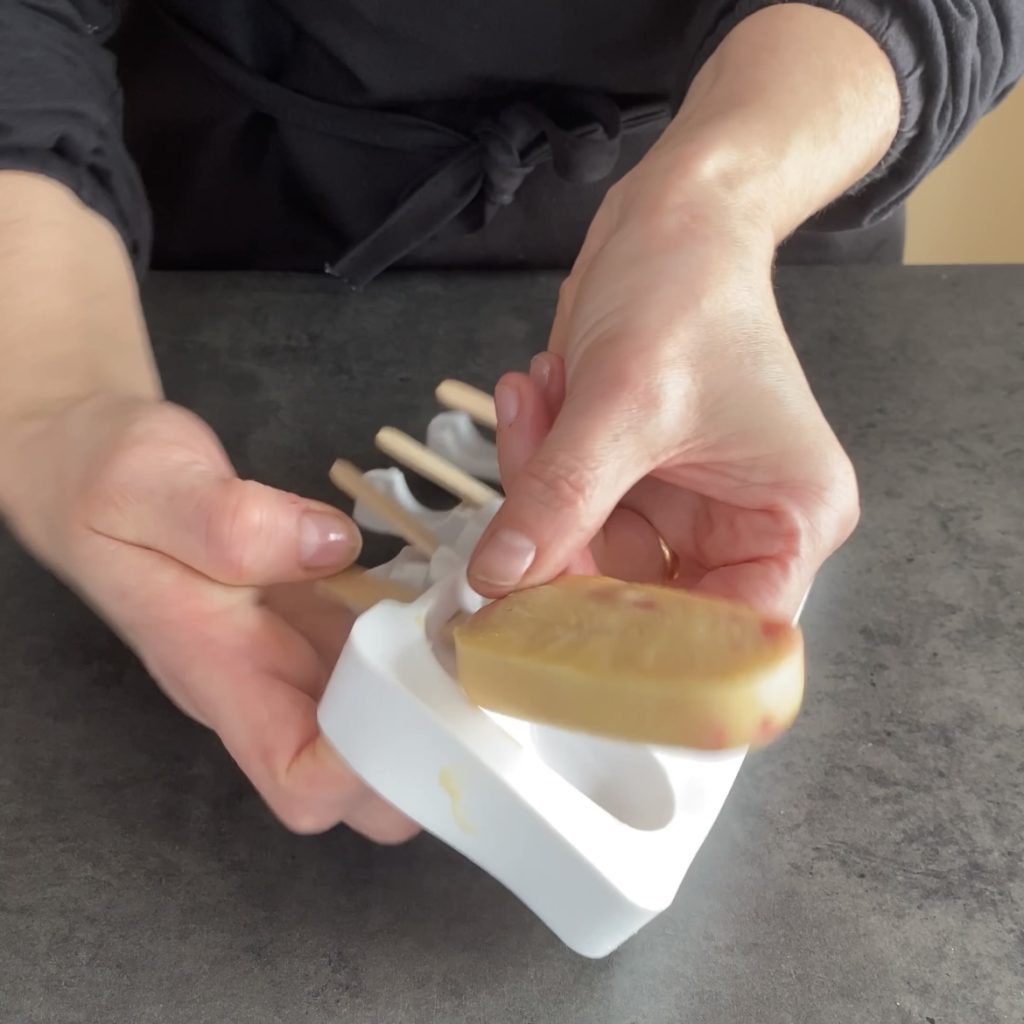 Lorsque les glaces sont prêtes, retirez-les du moule et servez-les, ou remettez-les au congélateur dans un contenant bien fermé ou dans un sac.