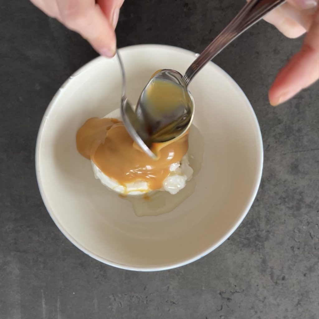le lait concentré sucré, j’ai utilisé celui sans lactose qui a un goût et une couleur plus caramélisée.