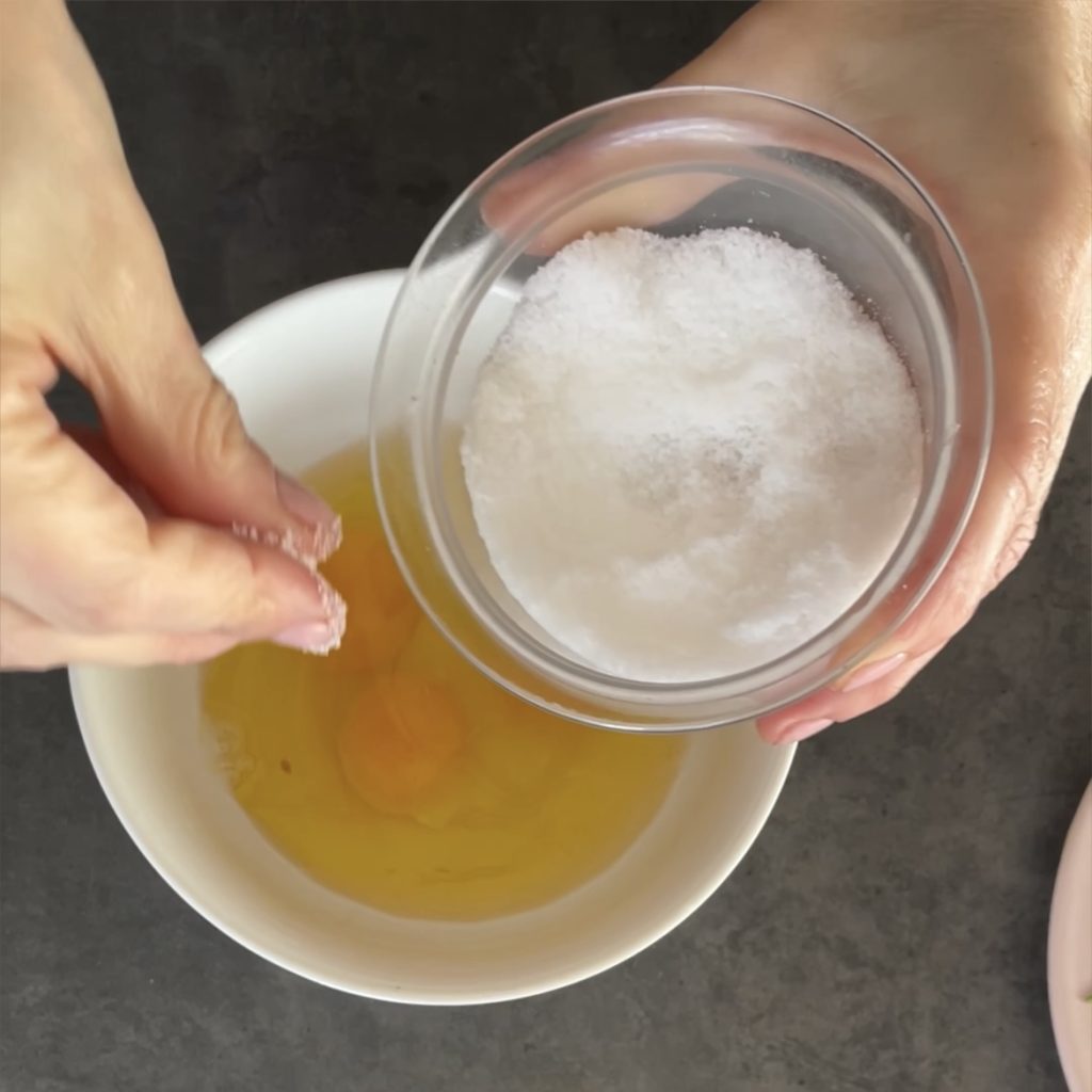 Versez les œufs dans un bol, ajoutez de l’huile d’olive extra vierge,