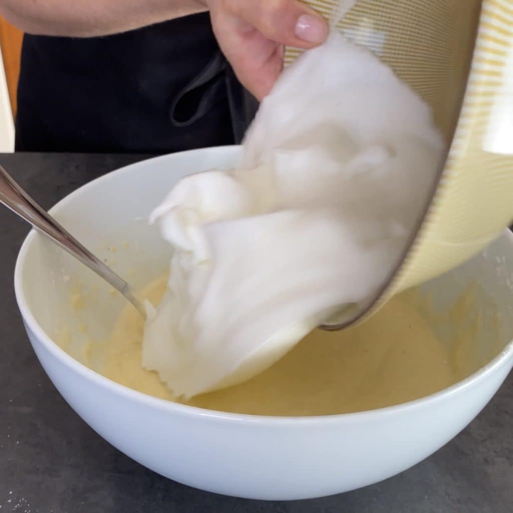 • Lorsque le mélange sera lisse, ajoutez les blancs d’œufs préalablement montés en neige,