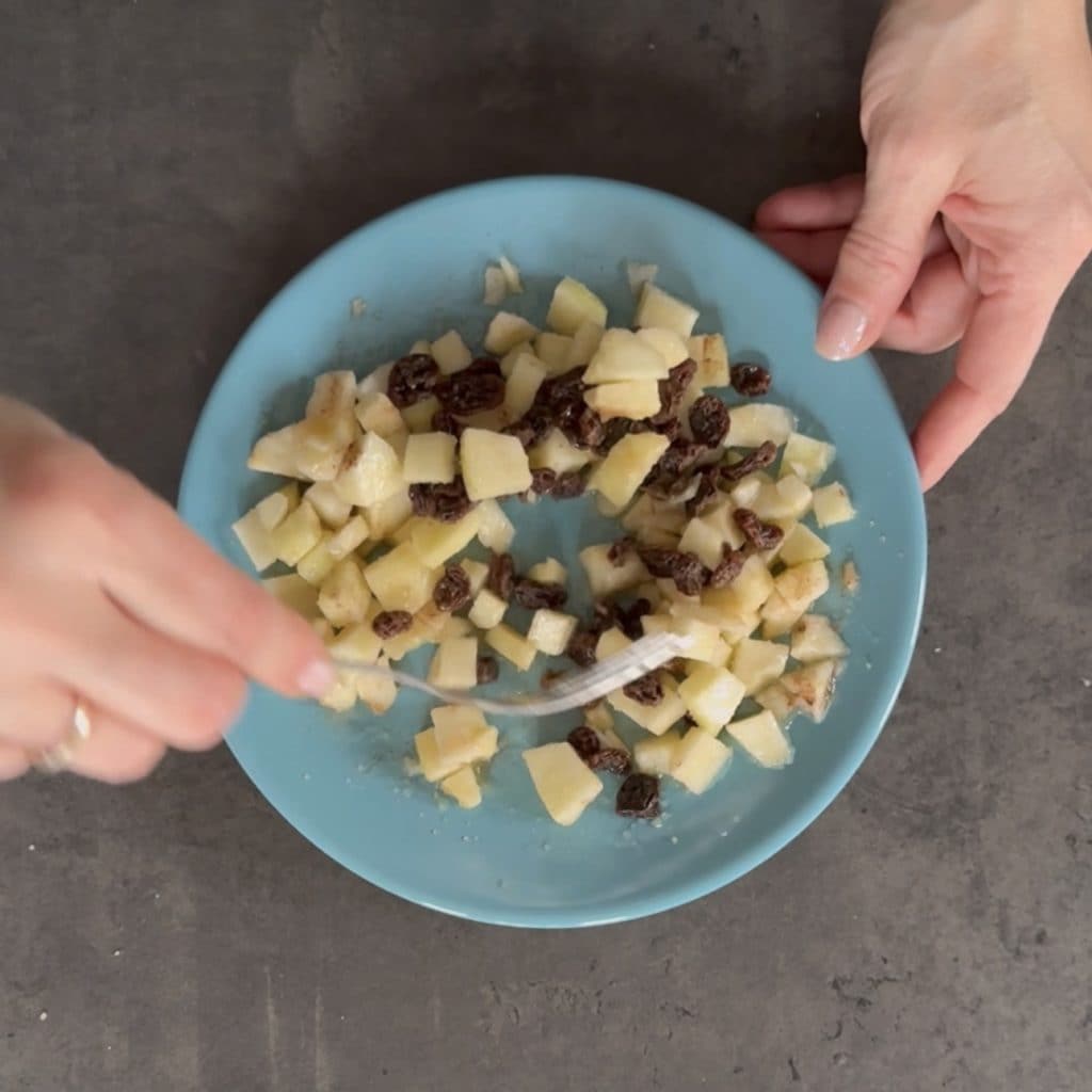 Ajoutez les morceaux de pomme et raisins secs aromatisés au beurre et cannelle,