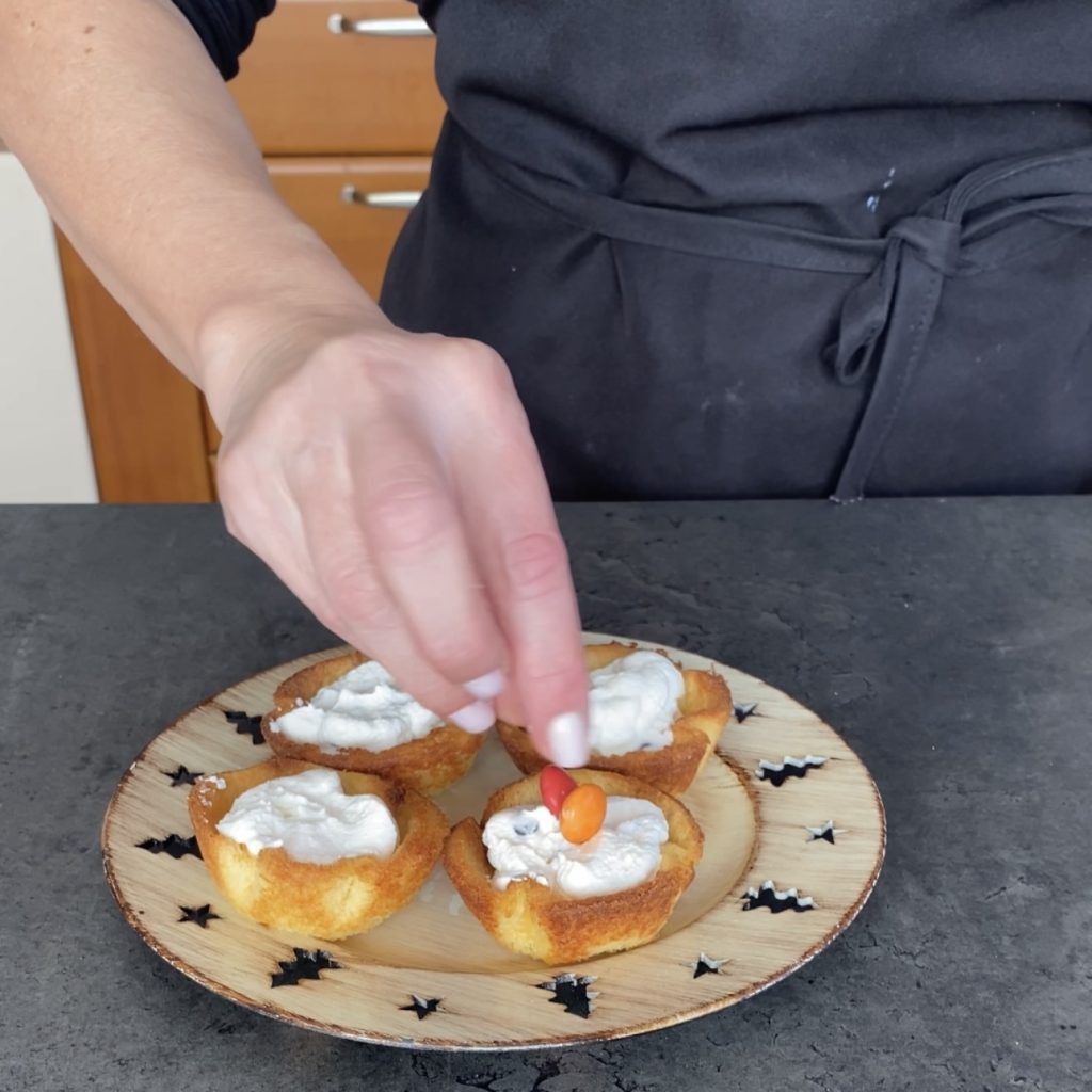• que vous placerez sur le moule à muffins, faites cuire dans un four statique déjà chaud à 180°C pendant 7 minutes, puis retirez-les et laissez-les refroidir complètement.