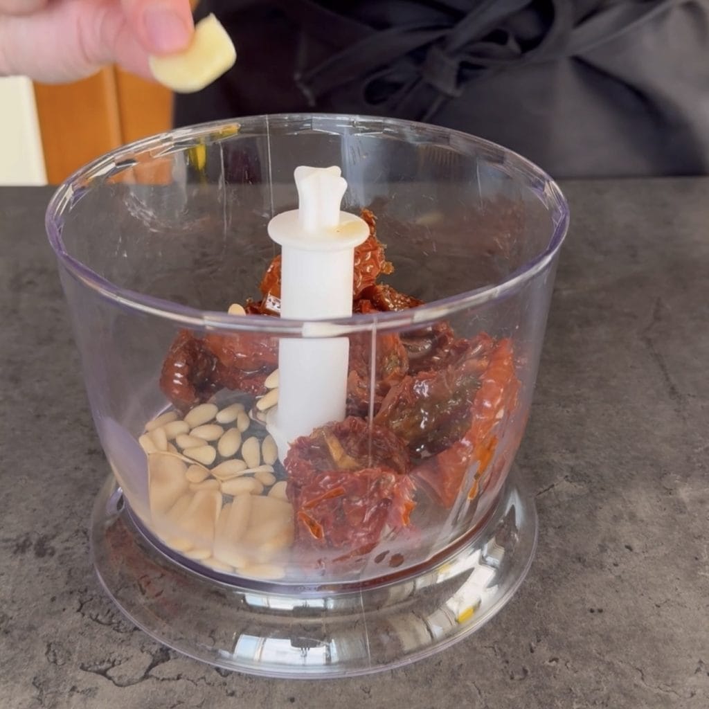 • Commençons à préparer les pâtes au thon et tomates séchées, versez dans le bol du mixeur les tomates séchées dont vous aurez retiré l’huile,