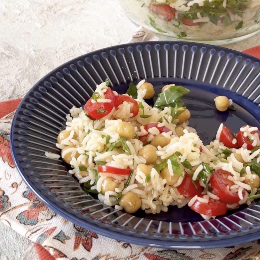RIZ FROID AVEC POIS CHICHES ET TOMATES CERISES