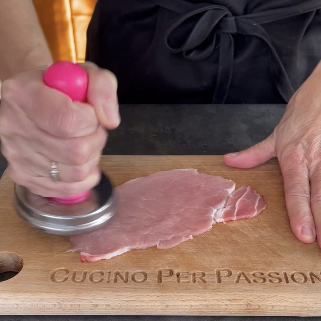 Avec un marteau à viande, aplatissez les tranches de lonza,