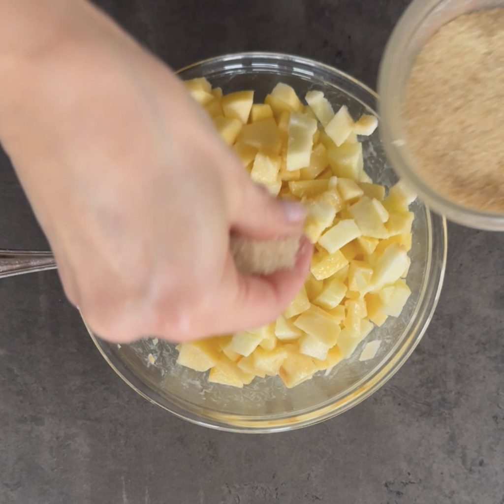 Ajoutez aux morceaux de pomme le beurre fondu,