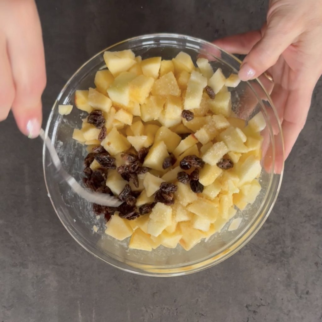 les raisins secs égouttés, mélangez bien et mettez de côté.