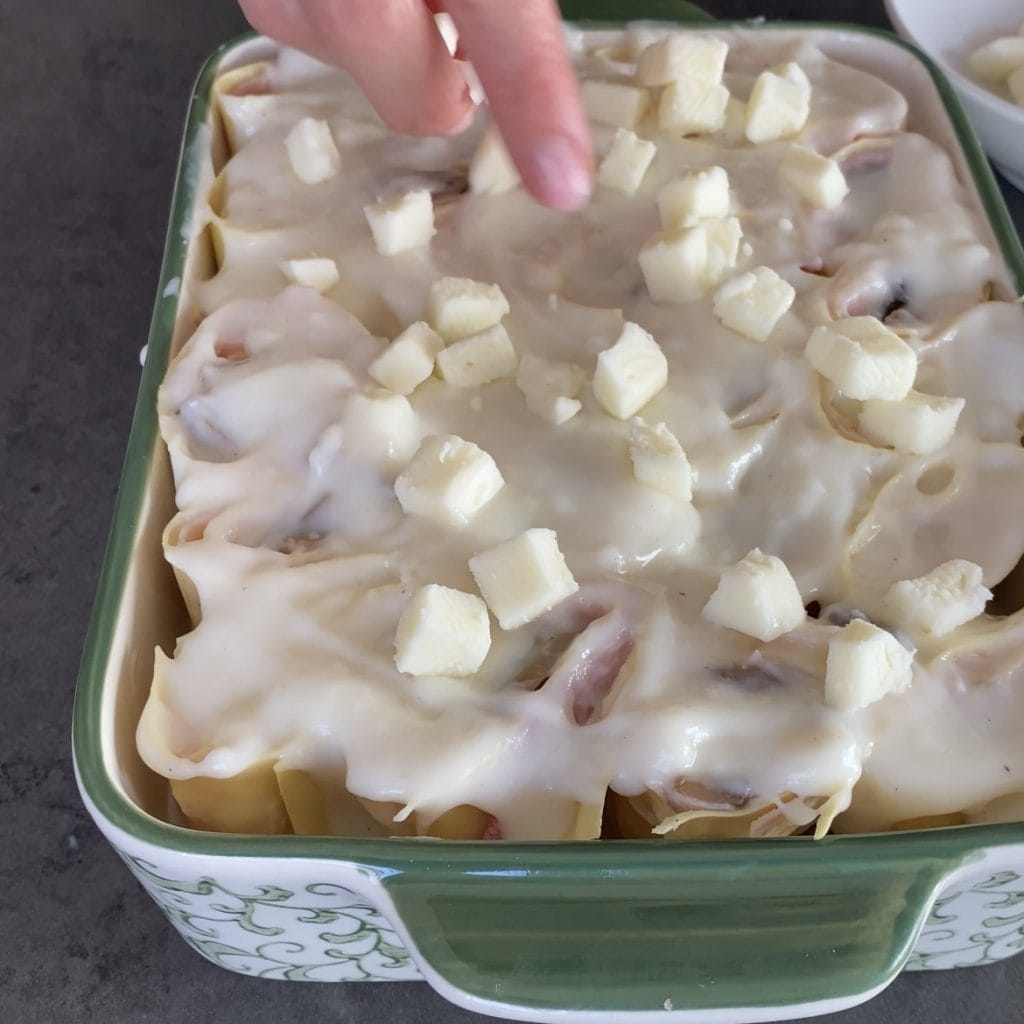 Rouleaux de lasagnes avec jambon et champignons un plat principal au four parfait pour toutes les occasions, même les plus spéciales, faciles à préparer et riches en saveur. Les rouleaux avec la pâte prête sont très simples à préparer car la pâte fraîche n’a pas besoin de précuisson mais une fois garnie, vous pouvez la cuire directement au four. Les lasagnes roulées sont appelées dans certaines régions d’Italie des nids d’hirondelles, je les ai préparées de plusieurs façons car je les trouve très polyvalentes et j’aime beaucoup la lasagne blanche. Si vous en faites quelques portions de plus, vous pouvez les congeler, vous pouvez utiliser soit des champignons de Paris frais que vous cuisinerez ensuite en suivant ma recette de champignons sautés, soit utiliser ceux en boîte déjà prêts qui sont utilisés pour la pizza. Vous pouvez également cuire les lasagnes dans une friteuse à air en suivant les instructions de cuisson de la recette des LASAGNES DANS UNE FRITEUSE À AIR. Maintenant, allons voir comment faire les rouleaux de lasagnes avec jambon et champignons et si vous les essayez, faites-le moi savoir. Barbara