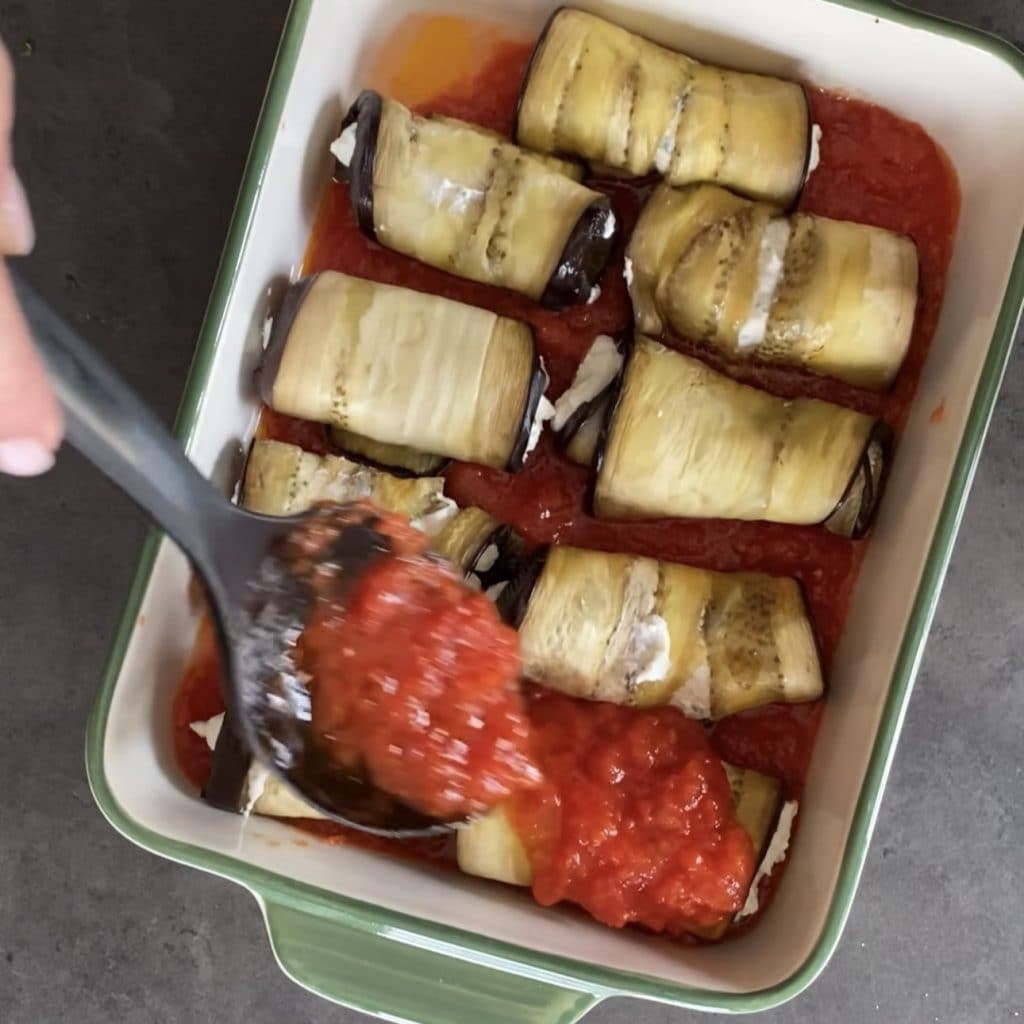Servez les Roulés d’aubergines au four chauds ou à température ambiante.