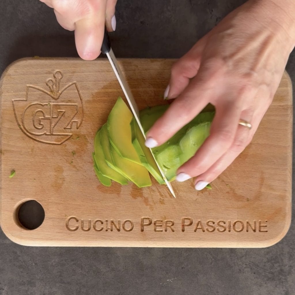 Nettoyez l’oignon de Tropea et tranchez-le finement avec la mandoline.