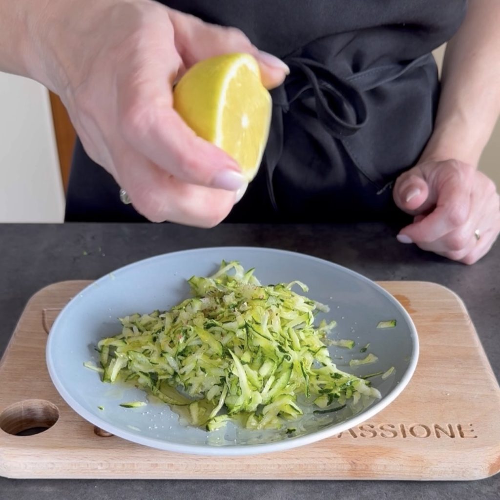Versez le riz dans un bol, ajoutez la courgette râpée et assaisonnée,