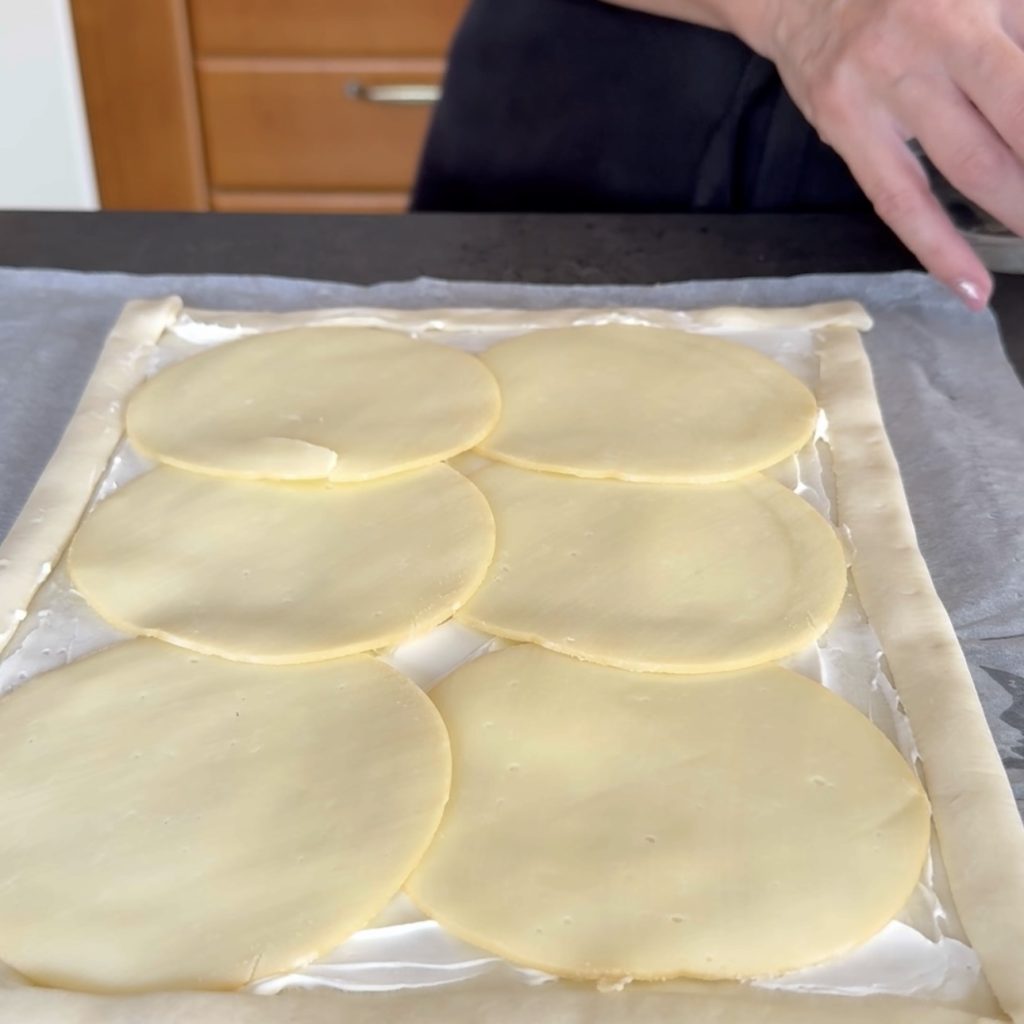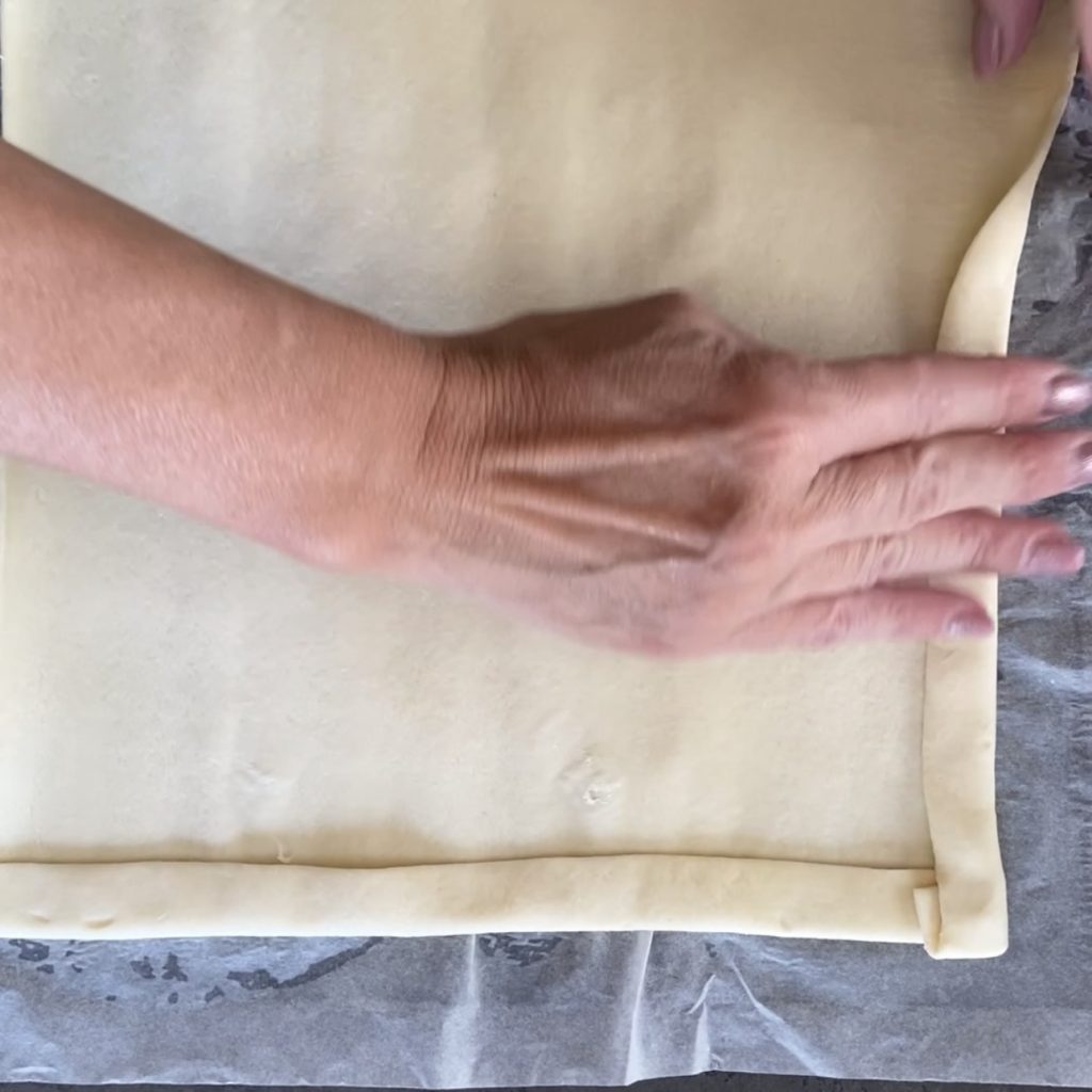 Déroulez la pâte feuilletée et repliez les bords afin que lors de la cuisson un rebord se forme,
