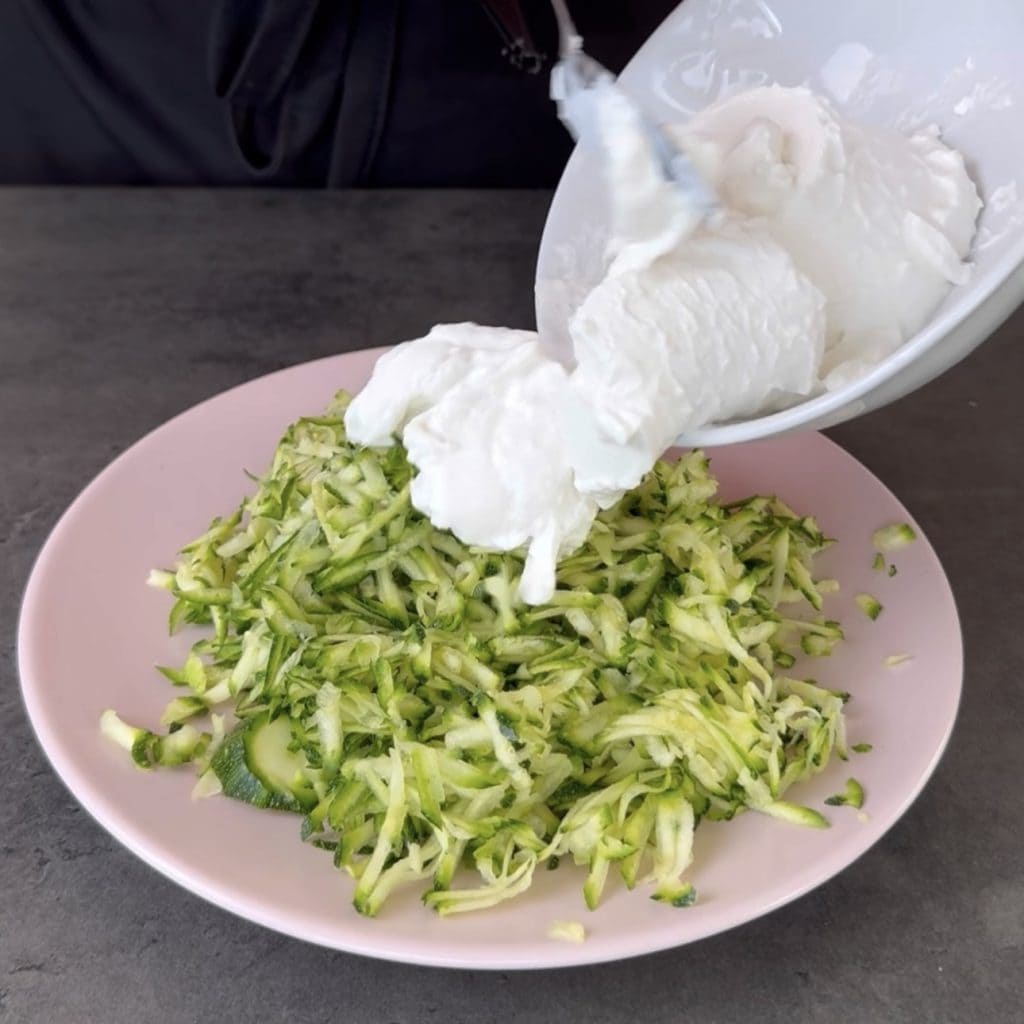 Versez la courgette râpée dans une assiette, ajoutez la ricotta