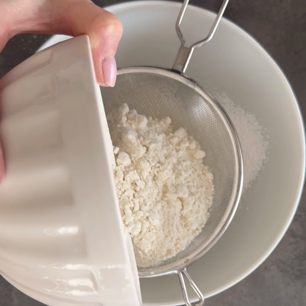 Commençons à préparer les Tartelettes à la crème, en premier lieu préparez la pâte sablée, tamisez directement dans le bol le sucre glace et