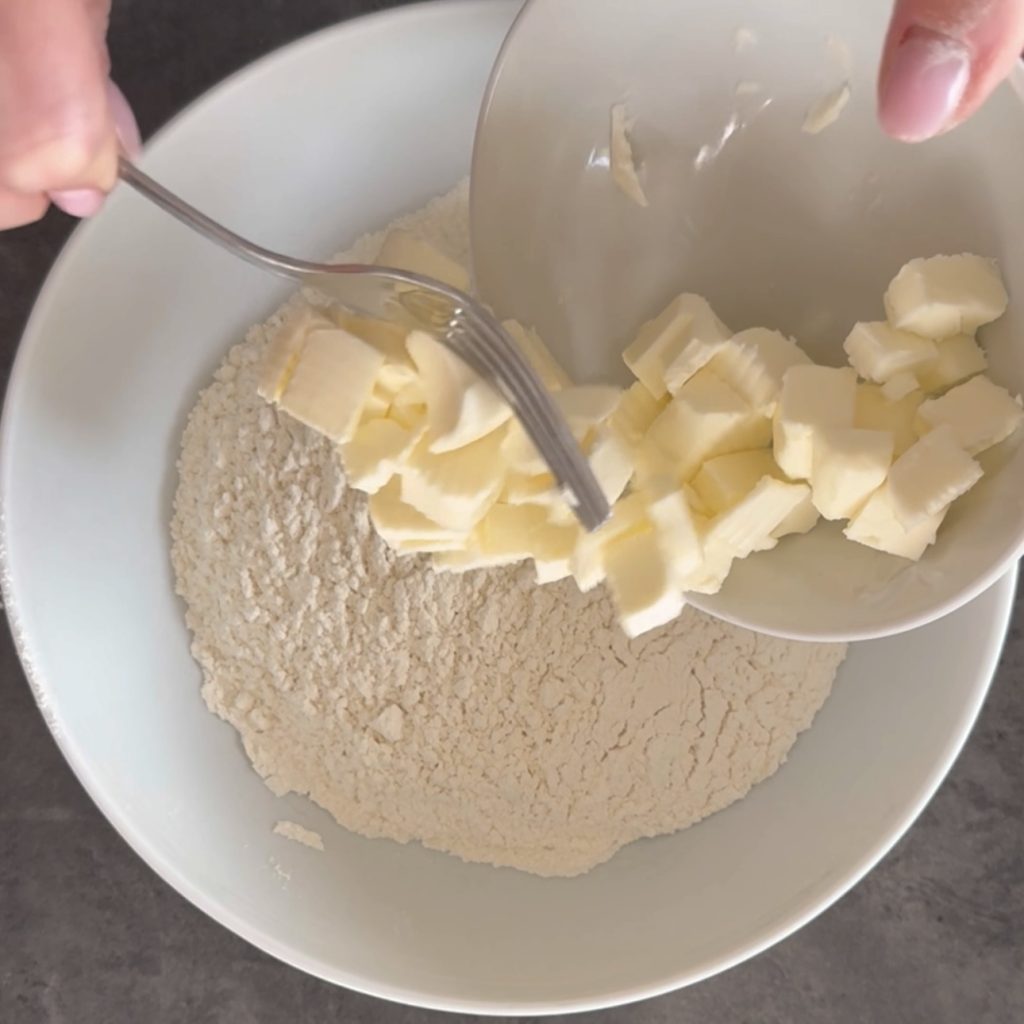 ajoutez le beurre froid coupé en petits morceaux,