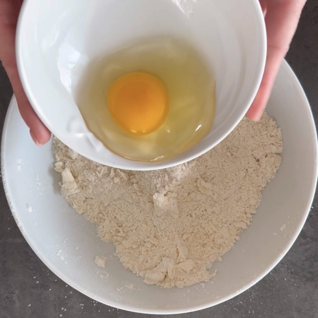 Ajoutez maintenant l’œuf et mélangez d’abord avec une fourchette