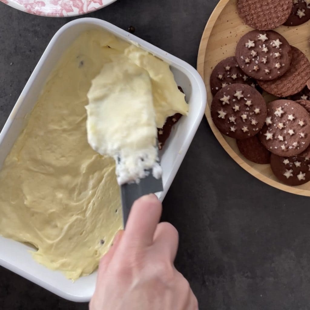Encore de la crème et terminez avec une dernière couche de pan di stelle.