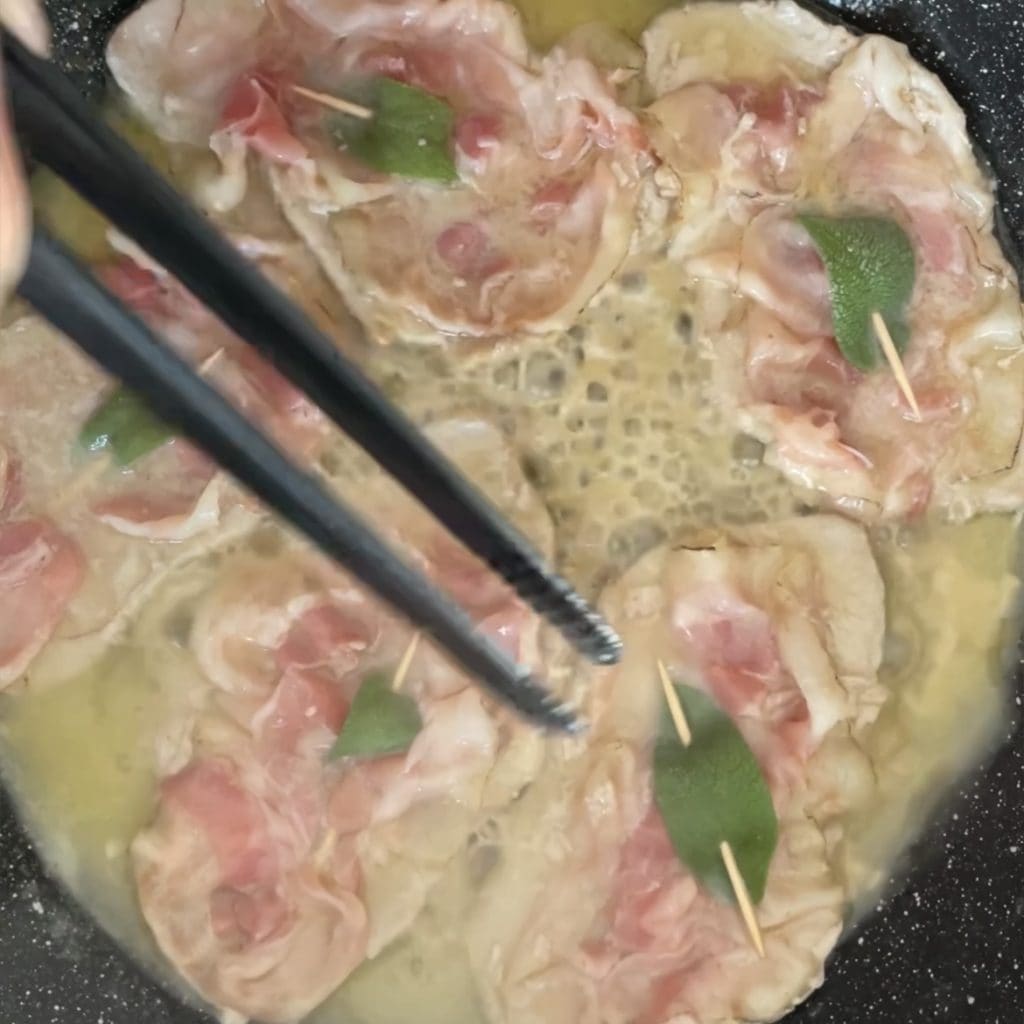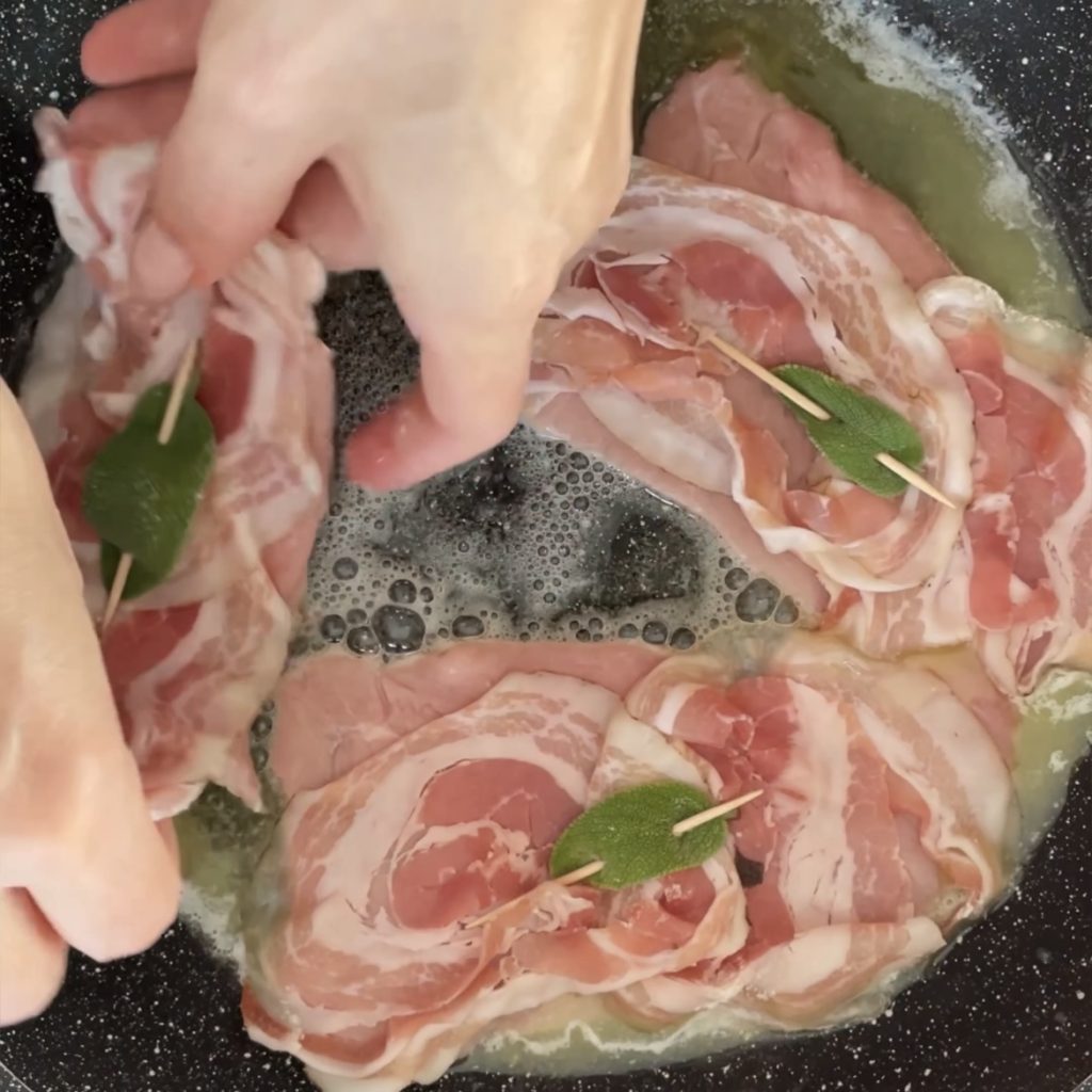 Servez les Saltimbocca avec lard bien chauds accompagnés de la sauce de cuisson