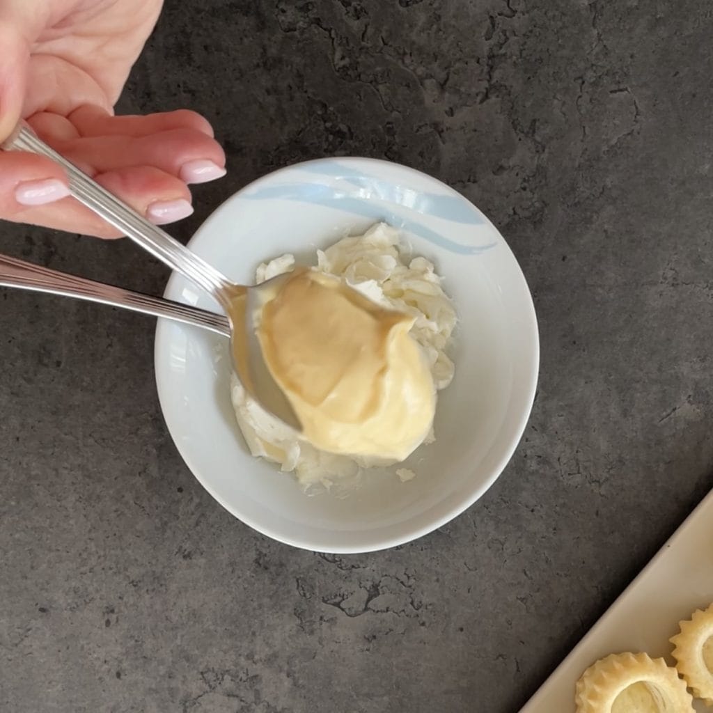 • Ajoutez au fromage à tartiner, 2 cuillères de mayonnaise