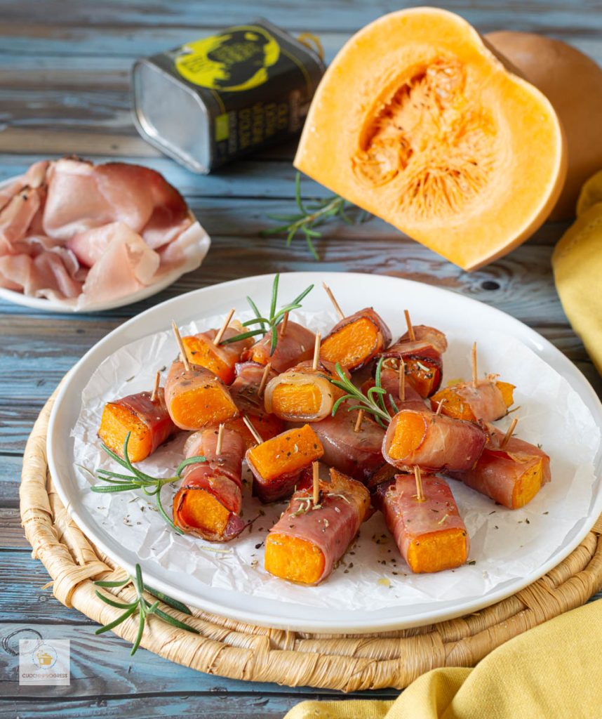 Ces délicieuses bouchées incarnent la simplicité de la cuisine de saison : peu d’ingrédients authentiques, combinés avec équilibre pour créer une explosion de saveurs. La courge rôtie devient fondante et enveloppante, tandis que le speck croustillant apporte une note salée qui équilibre et sublime le goût du légume.