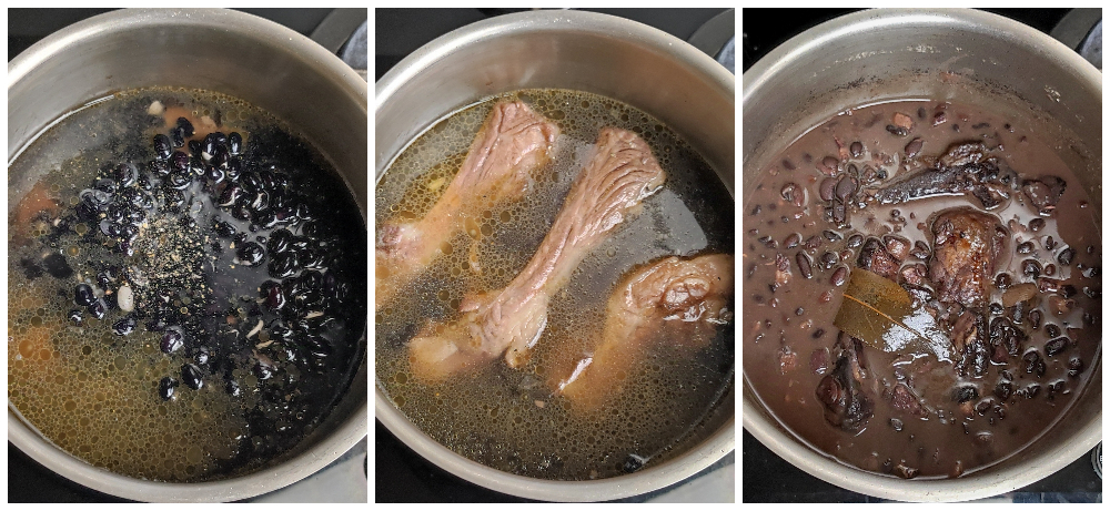 Dès que vous voyez que la feijoada est bien épaisse et que les côtes commencent à se détacher de l’os, éteignez le feu.