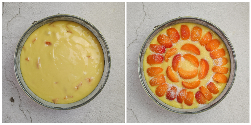 • Ajoutez les abricots en dés à la pâte, mélangez délicatement et répartissez-la dans un moule de 22 cm beurré et fariné ou dans un moule en silicone.
