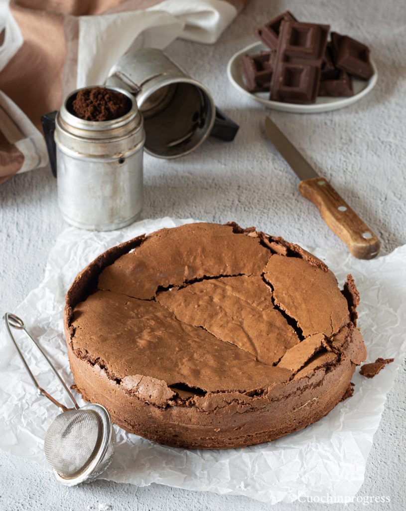 La GÂTEAU TENERINA est un dessert typique de la ville de Ferrare, un péché gourmand au chocolat vraiment irrésistible. Bien qu’il ait une longue histoire (il a même été dédié à la reine Hélène du Monténégro et est donc aussi appelé monténégrin), il se prépare facilement, en quelques étapes, et le goût est à couper le souffle, à condition d’utiliser du chocolat noir de qualité. Préparé sans levure, il a une fine croûte extérieure croustillante et un cœur moelleux, humide et crémeux. C’est pour cela qu’il fond littéralement en bouche.